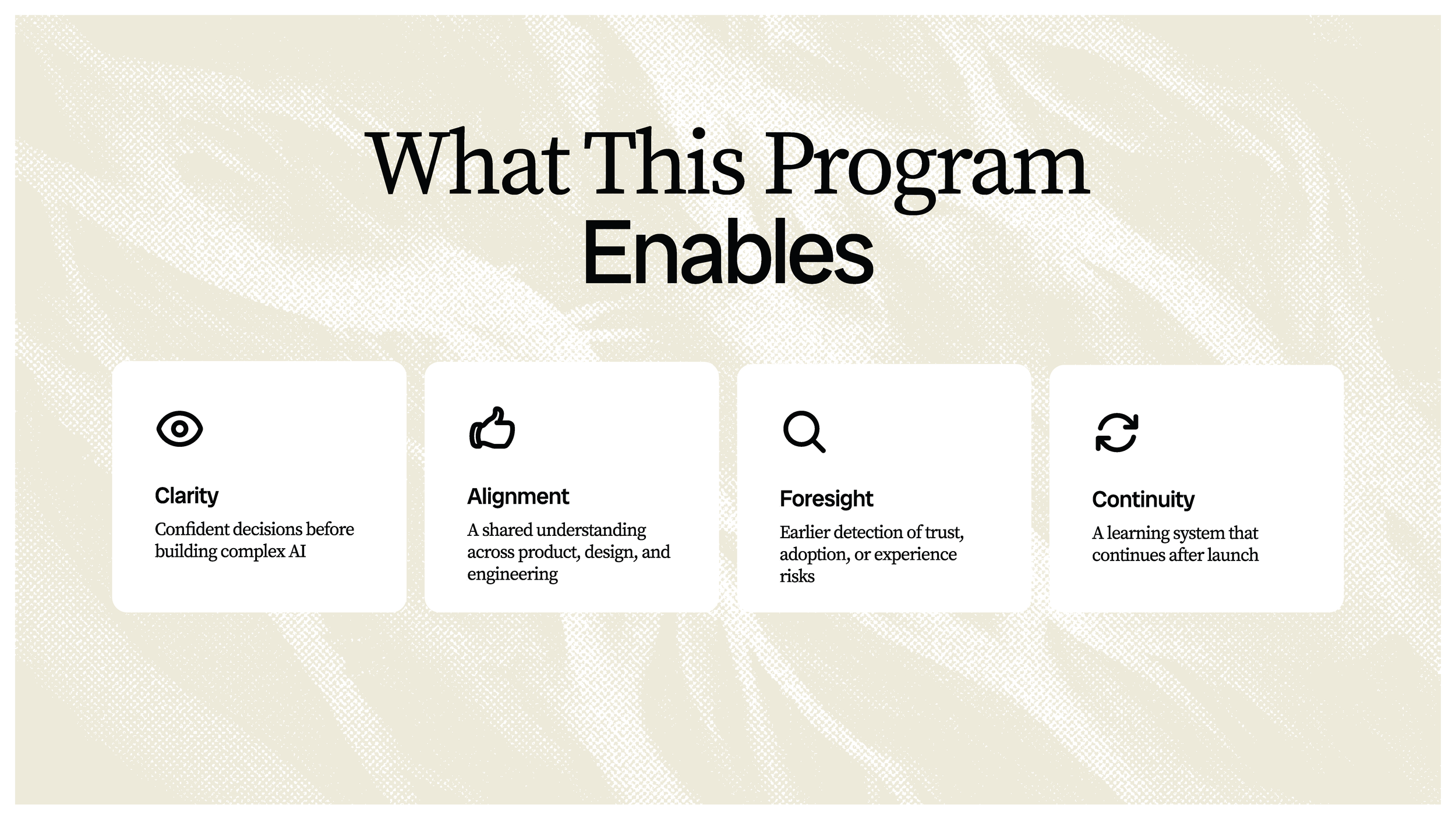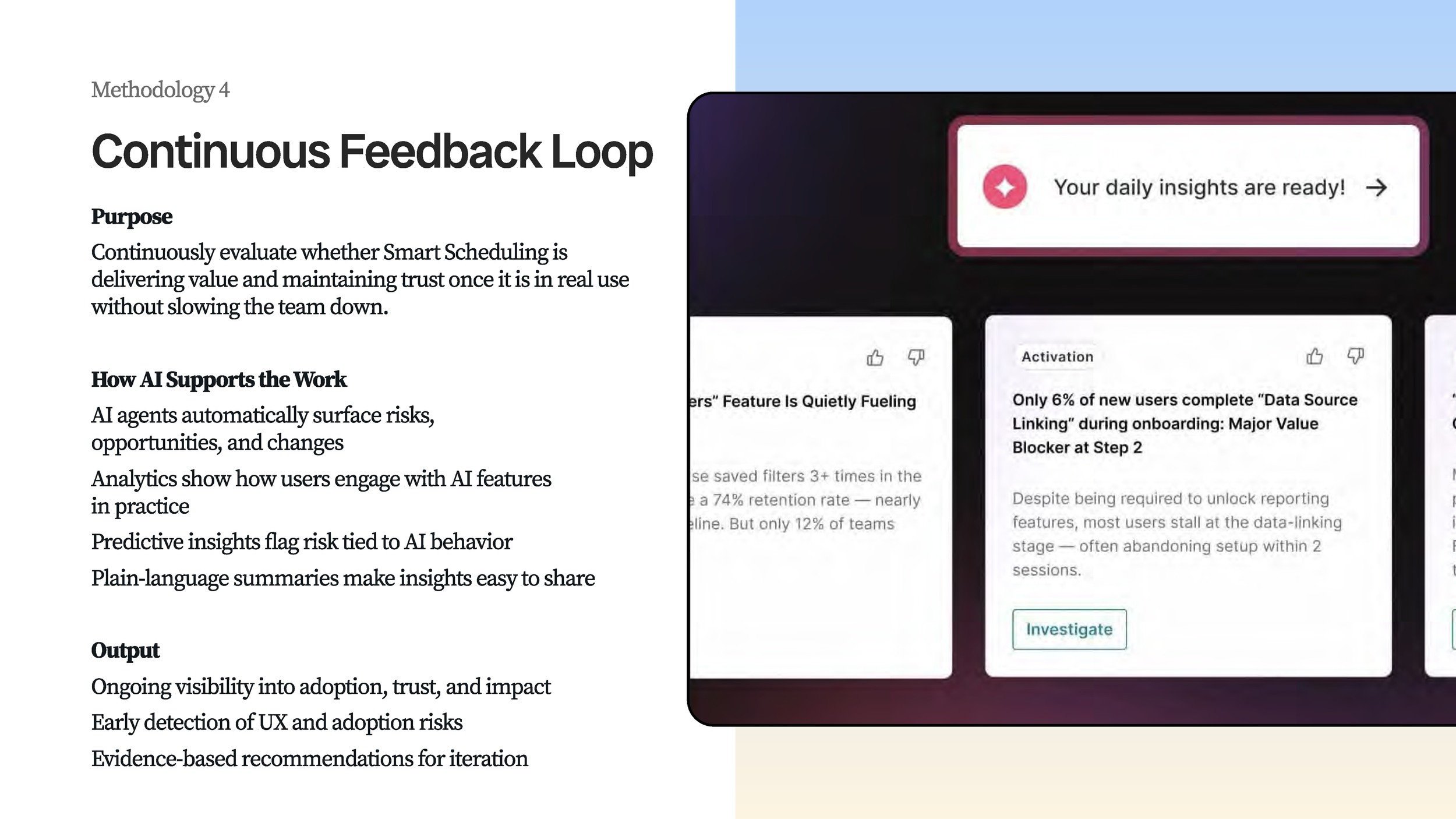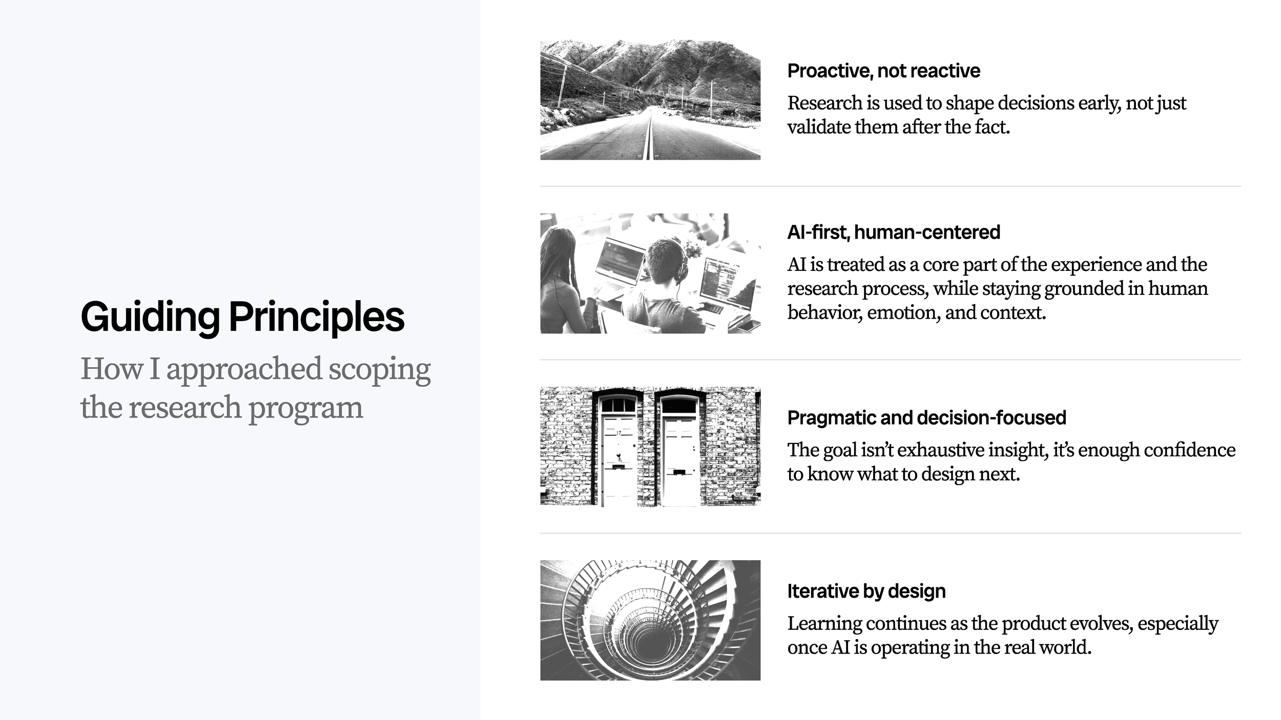 I created an AI-first research program to validate the problem, support design, and enable continuous learning after product launch.